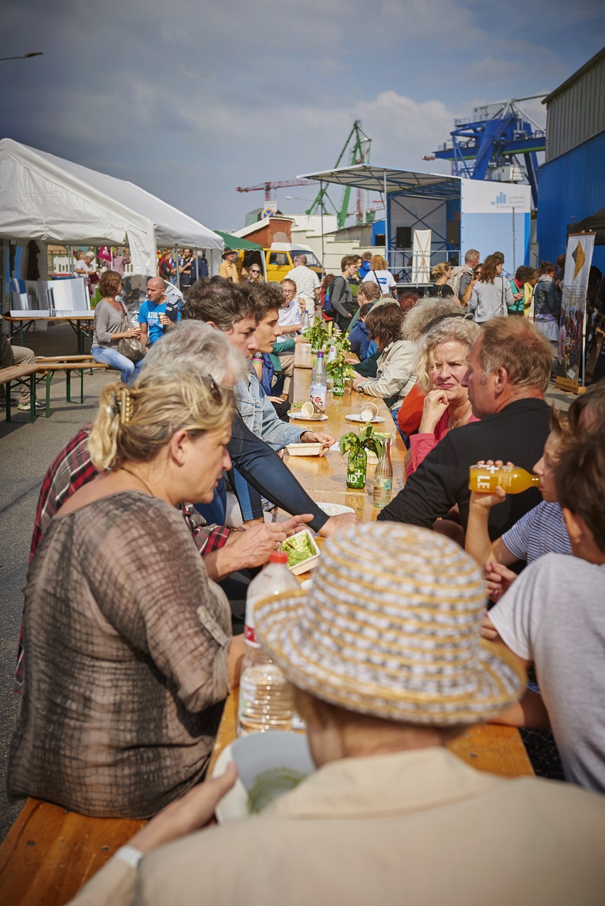 Wird’s was mit dem Wetter, oder macht uns Petrus einen Strich durch die Rechnung? Diese Frage hatten wir uns auch ein Jahr zuvor schon gestellt, im September 2015. Doch genau wie vor einem Jahr klarte auch beim zweiten PIER Festival pünktlich zu Beginn der Himmel auf, so dass einem reibungslosen Ablauf nichts mehr im Wege stand. Bühnen-Highlights in diesem Jahr waren eine mitreißende Modenschau in Kooperation mit der Nordend-Boutique „Apfelgrün“ und die Verleihung der Ökotabel-Awards, mit denen unter anderen die Frankfurter Strohballenhaus-Planer ROOK-Architekten und die Triodos-Bank für ihr Nachhaltigkeitsengagement ausgezeichnet wurden. Dazu gab es spannende Nachhaltigkeitsinformationen und -aktionen an 39 Ständen, eine Grüne-Soße-Charity-Aktion in Zusammenarbeit mit dem Restaurant Gerbermühle und entspannte Livemusik von Isa & Alex. Auch den Besuchern schien es gefallen zu haben – wie im Vorjahr fanden etwa 800 Menschen den Weg zum Franziusplatz. Unser Dank gilt allen, die das Fest mit ihren Angeboten bereichert haben, aber auch der Stadt Frankfurt sowie den Firmen Manke, FES und GS Miet für die logistische Unterstützung.
