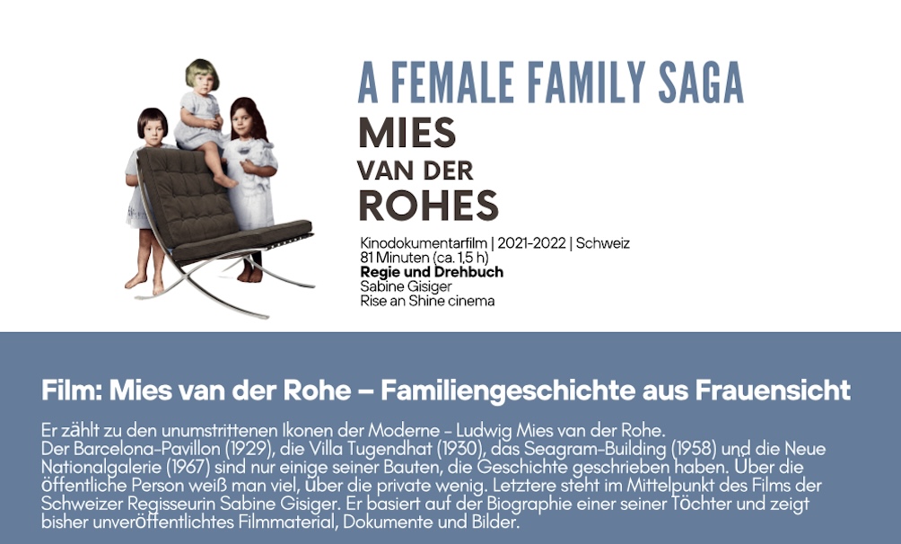 6.11.2025, 19 Uhr Architektur im Film: „The Mies van der Rohes – A Female Family Saga“