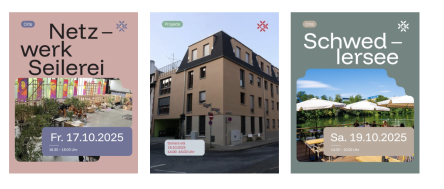 Sonara eG, Sa 18.10., 14–16 Uhr: Genossenschaftliches Wohnen hautnah erleben Mietwohnung, Eigenheim – beides kann mit Problemen verbunden sein und gar zur Last werden, erst recht wenn sich Lebensumstände ändern. Interessante Alternativen bilden Formen des Genossenschaftlichen Wohnens. Dabei geht es um Selbsthilfe, Selbstverwaltung und Selbstverantwortung, um solidarische Nachbarschaft und eine sozial gerechte Wohnungsversorgung. Die Genossenschaft Sonara in Frankfurt-Höchst setzt auf Suffizienz, also darauf, dass man nur so wenig Raum beansprucht, wie man wirklich braucht, ihr Haus erfüllt Energiestandard KfW 40 plus und hat 59 Photovoltaikmodule auf der begrünten Dachfläche. Bei unserem Besuch erzählen Mitglieder des Projekts die Sonara-Geschichte, informieren über Genossenschaftliches Wohnen und beleuchten den gemeinschaftlichen Alltag. Teilnahmegebühr: 13 € Anmeldung unter: https://pier-f.de/festival2025/