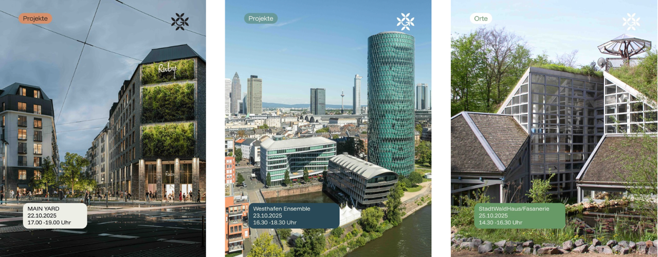 Westhafen Ensemble / Vepa, Do 23.10., 16.30–18.30 Uhr: Exklusiver Rooftop-Besuch und Einblicke in grünes Möbeldesign (Tower, 20. OG) Längst so etwas wie Wahrzeichen: Das Westhafen Haus, der im Volksmund „Geripptes“ genannte Westhafen Tower und das Westhafen Brückengebäude bilden das Entree ins Westhafenquartier. Es handelt sich um zertifizierte Green Buildings mit begrünter Dachterrasse. Im 20. Stock des 112 Meter hohen Towers befindet sich eine Deutschland-Repräsentanz des innovativen, nachhaltigen niederländischen Büro- und Projektmöbelherstellers Vepa. In der ersten Stunde unseres Besuchs erfahren Sie auf der Dachterrasse des Westend-Hauses mehr über das Westhafen Ensemble und das Thema Gebäudebegrünung. Anschließend erläutert Marco Schoneveld, Vepa-Geschäftsleiter Deutschland, wie kreativ und innovativ ein konsequenter grüner Ansatz in der Möbelherstellung sein kann.Unsere Führung bietete xklusive Einblicke ins Westhafen Ensemble, Erste-Hand-Infos zu Rooftop-Greening und Circular Design, außerdem ungewöhnliche Ausblicke und Fotomotive. Teilnahmegebühr: 13 € Anmeldung unter: https://pier-f.de/festival2025/