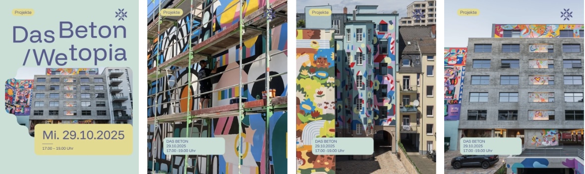 DAS BETON/Wetopia, Mi 29.10., 17–19 Uhr: Ein kreatives Gebäude und Street Art XXL, aus erster Hand erklärt. Umweltverträgliche Materialien, inspirierendes Ambiente: Diese Gedanken bewegten den Frankfurter Immobilieninvestor Ardi Goldman, als er 2023 im Hinterhof einer seiner Bestandsimmobilien einen Neubau errichten ließ und ein ungewöhnliches Kunstprojekt initiierte. DAS BETON ist ein Loft-Bürogebäude aus Leichtbeton, das Dachgeschoss mit begrüntem Satteldach ist in erster Linie eine Holzkonstruktion. Etwa zeitgleich wurden die Hinterhoffassaden mit riesigen Gemälden, sogenannten Murals, versehen. So entstand einer der größten Mural Parks des Kontinents. Der Name passt: Wetopia. Architektin Alexandra Geiseler (DAS BETON) und Ardi Goldman erläutern Konzept und Details, spektakuläre Fotomotive garantiert. Teilnahmegebühr: 13 € Anmeldung unter: https://pier-f.de/festival2025/ (Anmeldung Studenten an s.petry@pier-f.de)
