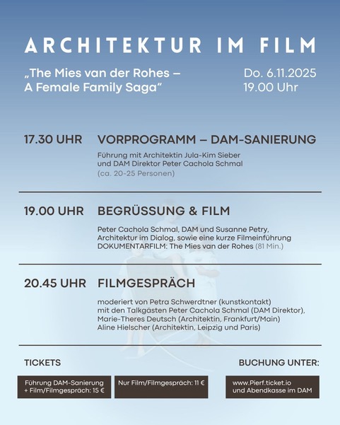 Frauen bauen (grün) Als Teil des bundesweiten Festivals „Women in Architecture (WIA)“ hat sich zuletzt auch die Initiative #FrauenBauenDarmstadt mit dem gleichnamigen Webportal etabliert. Hier erzählen Frauen in VideoShorts, wie sie Architektur oder Stadt mitgestalten, um sichtbar zu werden und Vernetzung zu fördern – das Ganze wird unterstützt vom Bund Deutscher Architektinnen und Architekten (BDA) sowie von der WerkbundAkademie Darmstadt. Die „Architektur im Film“-Veranstaltung am 6. November im Deutschen Architekturmuseum ist ein schöner Anlass, das Anliegen auch nach Frankfurt und weiter in die Rhein-Main-Region zu tragen. Dort wird dann auch der Termin bekannt gegeben, bei der sich die „Frauen bauen“-Initiative ausführlicher in Frankfurt vorstellt.